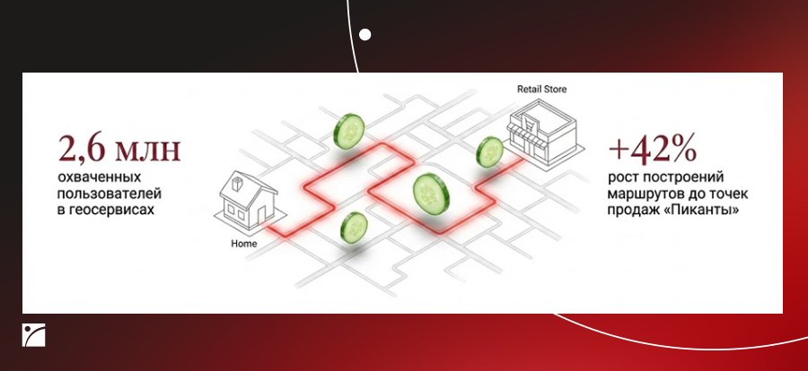 Чтобы конвертировать онлайн-знание в офлайн, бренд встречал людей по пути в магазин. Геомедийная реклама в Яндекс Картах и Навигаторе обеспечила охват 2,6 млн пользователей, а построение маршрутов до точек продаж выросло на 42%.