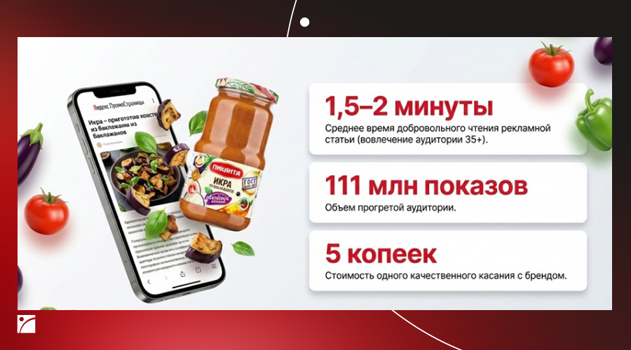 Пользователей, которые уже взаимодействовали с видео и баннерами Яндекса, догоняли ретаргетингом в Яндекс ПромоСтраницах. Формат лонгридов идеально подошел для аудитории старше 35 лет: люди тратили по 1,5–2 минуты на чтение нативных статей. Стоимость одного касания составила всего 5 копеек при 111 млн показов.