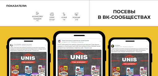 Клиент — UNIS, производитель строительных смесей. Период работы: май–декабрь 2024 года. Перед нами стояла задача повысить узнаваемость бренда и отдельных продуктовых линеек, а также обеспечить стабильный трафик на карточки товаров.